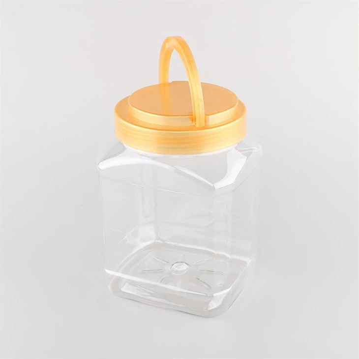 Denne gennemsigtige plastikbeholder med gult låg, som er perfekt til emballering af madvarer som korn, slik, småkager og popcorn. Disse dåser er designet til at opfylde de højeste standarder for kvalitet og sikkerhed.